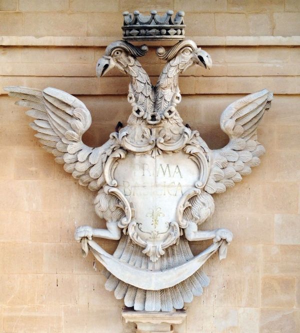 La basilica fu consacrata il 21 settembre 1783 dal vescovo Mons. Giovanni Alagona. La facciata, tipicamente barocca, è divisa in tre ordini architettonici. Il terzo ordine funge da cella campanaria, ospitando la campana maggiore del 1679 proveniente da Terravecchia. Sulla porta centrale, un’aquila bicipite in pietra asfaltica riporta la scritta “Prima Basilica” e la data 1760, sottolineando l’importanza storica dell’edificio​.